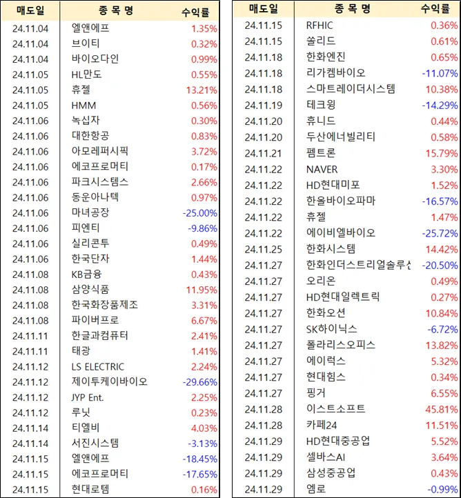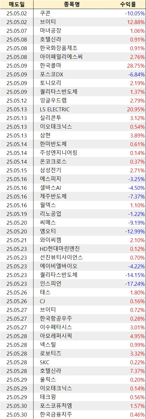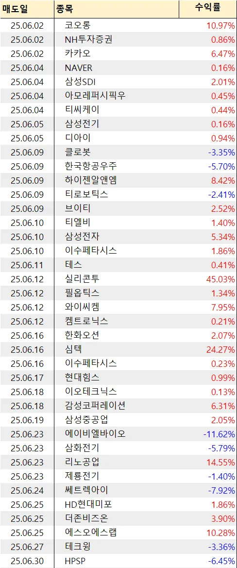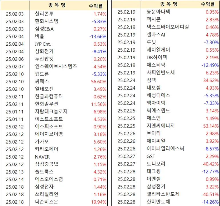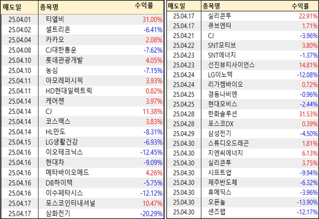 이번달은 30%이상 수익종목도 겨우 2개밖에 안되서... 아쉽긴 합니다.